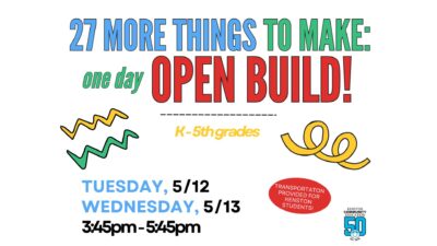 One Day Open Build Kindergarten - 5th Grade Ready to create, design and build? End off the year with a ONE session OPEN...